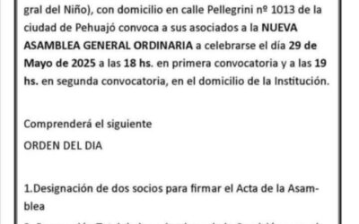 Información necrológica: Ha fallecido el día 28 de mayo de 2025, a los 82 años de edad BERNARD ELVIRA MARGARITA » BEBA 2 – Casa de duelo: Del Valle 796, Pehuajó. – Sus restos serán velados el día 29/05 de 08:00 a 15:00 hs. – Sala Velatoria: Chassaing 731, Pehuajó – Servicio: BEMAT SALUD