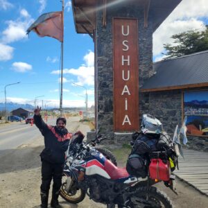 En diciembre, el pehuajense, Carlos Velutti decidió emprender un viaje en su moto, “La Carpincha” saliendo desde Estados Unidos, donde vive actualmente, y con el objetivo de llegar hasta Ushuaia. En el día de ayer, después de haber recorrido más de 26 mil kilómetros y alcanzar la meta de visitar la Provincia de Tierra del Fuego, Antártida e Islas del Atlántico Sur, regresó a su ciudad natal. Velutti contó que a lo largo de su viaje atravesó inconvenientes relacionados a las cuestiones de inmigración que rigen en algunos países, por ejemplo en México y Guatemala, pero que logró superar con ayuda de compañeros de ruta, quienes dejaron su marca, a través de firmas en su moto.
