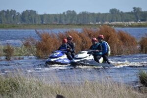 Buzos, búsqueda por videovigilancia, equipos de drones, embarcaciones y móviles de DDI, Defensa Civil, Bomberos y Comando de Patrulla Rural, trabajaban sobre el sector con rastrillajes permanentes.