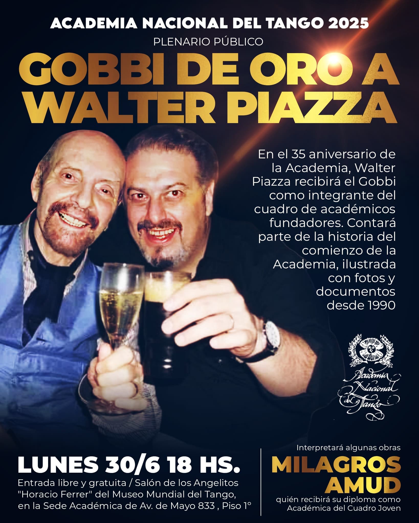 CulturaInstitucionalAcademia Nacional del Tango: Gobbi de oro para el pehuajense Walter Piazza Tito Fitante5 meses atrás5 meses atrás00 min Navegación de entradas Anterior: LLAMADO DE Bomberos Voluntarios Pehuajó: PRINCIPIO DE INCENDIO EN UNA CHIMENEA EN CALLE MANSILLA FRENTE A LA ESCUELA 13Siguiente: Nueva raviolada solidaria de la Agrupación de motos Pehuajó Deja una respuesta Cancelar la respuestaTu dirección de correo electrónico no será publicada. Los campos obligatorios están marcados con *Comentario * Nombre * Correo electrónico * Web