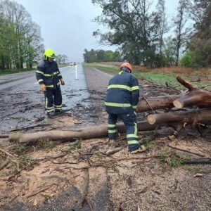 Un árbol se había desplomado sobre una camioneta Nissan Kicks que circulaba por la ruta. Personal sanitario ya se encontraba asistiendo a las víctimas.
