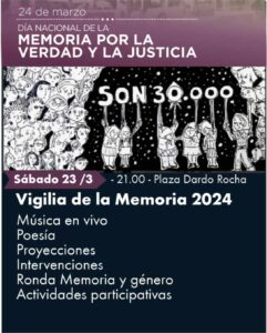 El militante del Partido Comunista, Ramón Sarmiento, invitó a la comunidad a los actos que se realizarán el fin de semana para conmemorar el día de la memoria por la verdad y la justicia, indicando que mañana a las 21 horas en la plaza central, habrá una vigilia con intervenciones artísticas y discursos, que culmina el domingo a las 9.30 horas con el acto protocolar, y en horas de la tarde, a las 17.30 horas, acompañarán a Víctor Suarez, familiar de desaparecidos, en el acto que se desarrollará en el salón municipal de Juan José Paso.