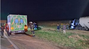En tanto el Scania, que habría impactado contra el semirremolque del Mercedes Benz arrancándole dos ejes, terminó también a la vera de la ruta pero unos 30 metros más adelante con la cabina totalmente destruida.