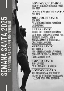 Informó que hoy y mañana habrá misas a las 20 horas, mientras que en la misa del miércoles se realizará la unción de enfermos con la presentación de nuevos óleos; el jueves a las 10.30 horas es la celebración de misa con los niños y las 20 horas el lavatorio de pies; para terminar la jornada con las puertas abiertas del Templo desde las 21 horas hasta las 8 del viernes, tiempo en el que quienes lo deseen podrán acercarse a rezar acompañando a Jesús en la oración del huerto. El viernes a las 15 horas es la celebración de la Pasión, mientras que a las 20 se realiza el Vía crucis, que esta vez tiene la particularidad de contar con imágenes de 14 estaciones talladas en madera, que fueron donadas por Jorge Jamar el año pasado y serán expuestas en vidrieras de comercios en el recorrido desde la estación de trenes a la Parroquia. El sábado hay misa a las 8 y a las 21 horas misa de vigilia, para finalizar el domingo con misas a las 9 horas en San José Obrero, y a las 10.30 y 19 horas en la Parroquia.