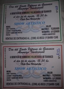 El encargado del Destacamento de Bomberos Voluntarios de Guanaco, Gastón Méndez, informó que ya están en venta las tarjetas para el almuerzo que organiza la institución para celebrar el Santo Patrono de la localidad, como hace 15 años. El valor es de $25 mil para mayores y $12 mil para menores, y se pueden adquirir en el Destacamento o comunicándose al teléfono fijo 489329 o al celular 15607680.