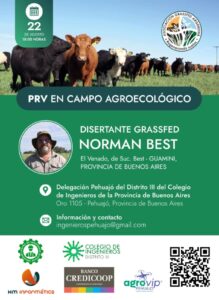 Marcos Di Fazzio, integrante del Centro, informó que están organizando una importante charla con Norman Best, productor agropecuario de Guaminí, del Nodo de agroecología en esa ciudad, quien brindará detalles de su experiencia personal en la producción de carne a pasto, en una disertación que lleva por nombre “PRV en campo agroecológico”.