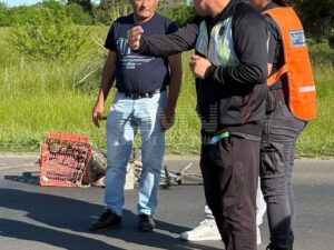 POR CAUSAS QUE SE TRATAN DE ESTABLECER COLISIONARON EN LA MENCIONADA ESQUINA UN MOVIL POLICIAL Y UNA MOTO 110. LAS DOS FEMENINAS DE LA MOTO FUERON TRASLADADAS AL HOSPITAL LOCAL.