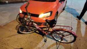 POR CAUSAS QUE SE TRATAN DE ESTABLECER COLISIONARON UN VW GOL Y UNA BICICLETA. LA FEMENINA DE LA BICI FUE TRASLADADA AL HOSPITAL LOCAL PARA SU MEJOR ATENCIÓN.