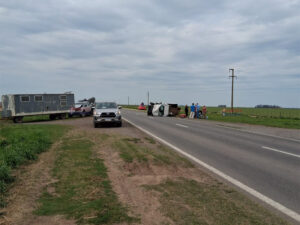 En ambos casos circulaban en sentido hacia General Villegas cuando se produjo el choque por alcance que provocó el vuelco de la camioneta Toyota Hilux.