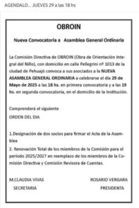 La actual Presidente de OBROIN dijo que habitualmente se realiza un intercambio de posiciones de la misma gente, pero lamentablemente en el último año hubo varias renuncias por diferentes cuestiones personales, y necesitan incorporar nuevos integrante a la Comisión, algo complicado en todas las instituciones.