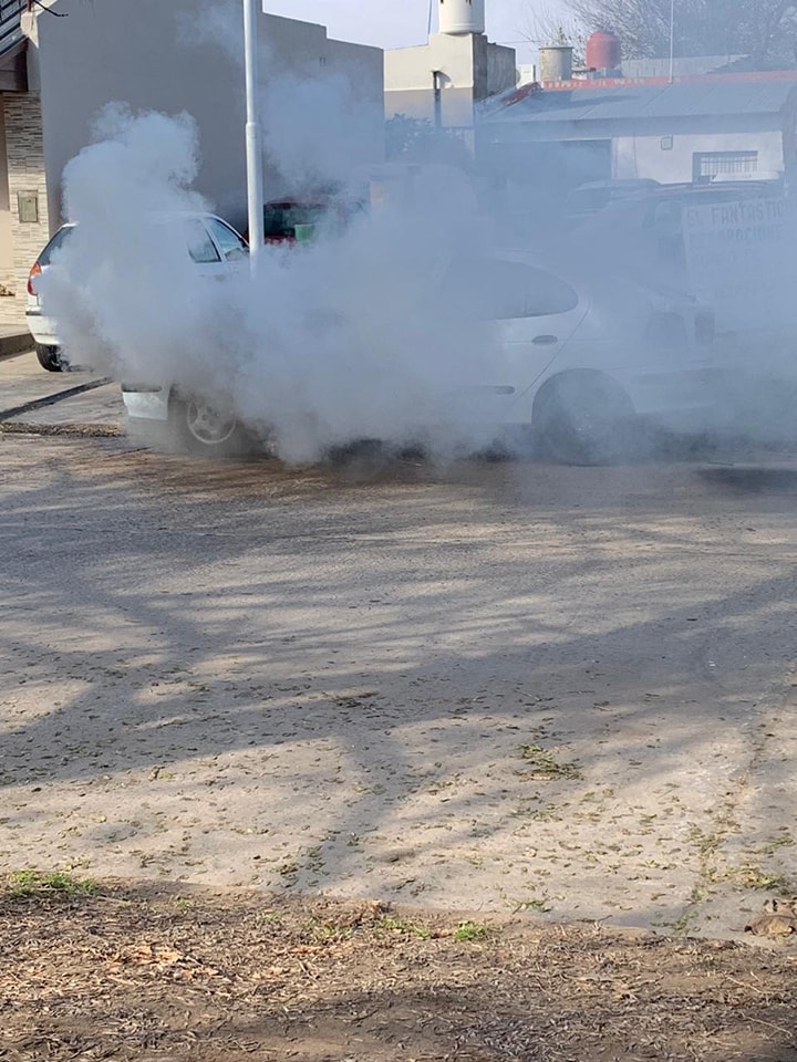 El dueño del vehículo repentinamente comenzó a percibir señales de humo en el aire, y, antes de poder reaccionar, éste empezó a echar llamaradas.