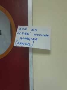 El cartel pegado en una de las puertas del Hospital Luisa Cravegna de Gandulfo, de Lomas de Zamora.El cartel pegado en una de las puertas del Hospital Luisa Cravegna de Gandulfo, de Lomas de Zamora.