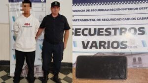 Que el día 20 del cte., mes y año se toma conocimiento por el ciudadano Catenaccio Fernando José (25), propietario del buffet de la terminal de omnibus local, constato que unos masculinos le realizaban compras fraudulentas desde aplicación mercado pago apócrifa hacia su cuenta Banco Nación. Al arribar personal policial al lugar dan con los masculinos, constatando fehacientemente lo ocurrido por el denunciante, procediendo a la aprehensión de los mismos siendo un menor de edad de 16 años y el masculino de 18 años de edad, ambos domiciliados en esta ciudad, secuestrandoseles un celular, elemento este que utilizaban para cometer las estafas.