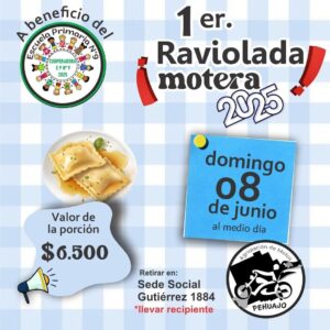 Una de las integrantes de la comisión Cooperadora de la EP9, Juliana Menvielle, informó sobre dos eventos que se desarrollan para recaudar fondos. En primer lugar, el viernes durante el acto por el 25 de mayo, habrá una feria de postres en la escuela; y por otra parte, la Agrupación de motos Pehuajó realiza su tradicional raviolada solidaria, esta vez a beneficio de la escuela, para lo que ya están en venta las tarjetas con un valor de $6500 la porción, y se pueden adquirir a través de alumnos, docentes, integrantes de Cooperadora o en la misma escuela.