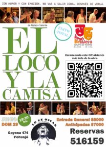 El grupo de teatro Vamos de nuevo de Bolivar, llega nuevamente a Pehuajó con una propuesta muy interesante para reír y reflexionar. “El loco de la camisa” cuenta la historia de una familia disfuncional, de un matrimonio con una hija y un hijo especial, que presenta un cuadro que mezcla un síndrome de Asperger y autismo, que tiene como consecuencia que solo puede decir la verdad. La historia comienza cuando la hija presenta a su novio, de buena posición económica, su príncipe azul, con quien planea salir de la mediocridad en la que vive, conto Carlos Teijón, actor y director de esta propuesta, quien agregó que el padre es un hombre violento, machista, y la madre, sometida.
