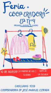 La Directora de la Escuela 9, Susana Mazzieri, informó que la Cooperadora trabaja intensamente en una serie de actividades durante el año, entre las que anunció la feria de cierre de temporada para este sábado. Será de 12 a 16 horas dentro del establecimiento, considerando las condiciones climáticas, y habrá variedad de ropa y calzado para toda la familia, pero también hay otros elementos disponibles.