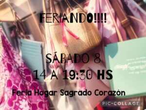 Una de las colaboradoras del Hogar Sagrado Corazón, Silvia Aveldaño, informó que este sábado se realiza una nueva feria, con una variedad enorme de ropa para toda la familia, especialmente por cierre de temporada; además de adornos, utensilios de cocina y otros. Dijo que por esta vez, el salón de muebles y artículos eléctricos no estará abierto, aunque pueden abrirlo en caso de que alguien lo requiera.