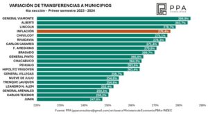 En ese sentido, las transferencias que recibieron Junin, Carlos Tejedor, General Arenales, Leandro N. Alem, Trenque Lauquen, Nueve de Julio y General Villegas en la primera mitad del año representan una caída de más del 5% en términos de poder de compra con respecto al mismo periodo del año anterior.