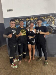 El instructor de Kick boxing en EKBA Pehuajó, Lucas Casavecchia, resumió lo ocurrido el fin de semana anterior, con tres de sus alumnos que participaron en dos competencias. En primer lugar el viernes, en Trenque Lauquen, hizo su debut Aníbal Rojas, quien venía practicando este deporte en forma recreativa y a sus 52 años de edad decidió competir, logrando una muy buena actuación que terminó en derrota por fallo dividido del jurado, abriendo el evento con su pelea. La segunda pelea de la noche fue también el debut de la representante de EKBA, Gabriela Pérez, quien sorprendió con un desempeño impecable, prolijo y técnico, escuchando al rincón y logrando los objetivos planteados en los entrenamientos. “Es una alumna muy tranquila y le pedíamos más agresividad porque la necesitábamos, y la tuvo” aseguró el entrenador, señalando que si bien el fallo del jurado fue desfavorable, aseguró que tanto el grupo de la escuela como el árbitro, entendieron que fue un triunfo. “Le recomendamos mirar la pelea y definir ella misma el resultado” señaló.