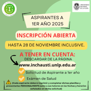 INSCRIPCIÓN PARA ASPIRANTES A PRIMER AÑO 2025
