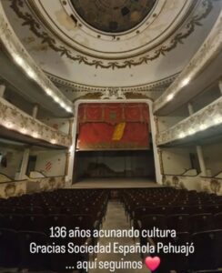 La responsable de prensa de la Sociedad Española, Patricia Rossi, se refirió al 136 aniversario que cumplió ayer la institución, y destacó a aquellos primeros pobladores que llegaron a un Pehuajó con pocos años, con calles de tierra, a fundar la Sociedad Española de Socorros Mutuos que les permitió enviar ayudas a las familias que quedaron en España, pero también sembrar y sostener la cultura española en nuestro país. Recordó además que en 1910 se fundó el gran Coloso Cultural que es el teatro, un legado que hoy luchan por mantener en pie y con las puertas abiertas, organizando diferentes eventos en los espacios que ya lograron recuperar. En ese sentido, celebró la participación nuevamente en La noche de los museos y coleccionistas, un maravillosa idea del Director del Museo del cine, que les permite ceder las instalaciones para que otras instituciones y particulares muestren sus tesoros, pero también para organizar un evento de música y baile que este año, homenajea al tango. Anunció que participará Marta Staroni con su ballet, y Pasión Española con sus castañuelas, además de la muestra del Museo del cine en homenaje a los tangueros pehuajenses.