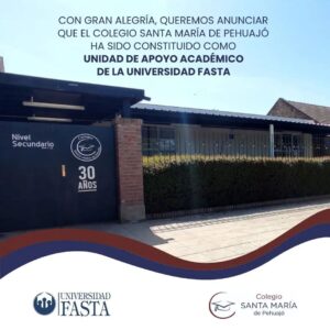 La Directora del Colegio Santa María, Jazmín Astudillo, confirmó que la institución fue declarada oficialmente Unidad de apoyo académico de la Universidad FASTA, lo que significa que todos aquellos estudiantes que cursen carreras a distancia en la Universidad, podrán rendir sus exámenes en nuestra ciudad. Aseguró que es una muy buena noticia para el Colegio, que siempre trabajó para abrir las puertas a la comunidad, y para la comunidad en general, porque es importante hoy contar con la posibilidad de cursar una licenciatura, carrera o curso a distancia, sin necesidad de viajar o instalarse en otra ciudad.