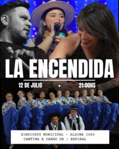 Una de las integrantes de la Peña La encendida, Pía Biafora, anunció la próxima edición de la peña, para el 12 de julio a las 21 horas en el Sindicato de trabajadores municipales, destacando que es la 7º edición desde que comenzaron a organizarlas, y la 2º de este año. Anunció la participación del ballet de Bellocq, la artista pehuajense Valentina Coronel, Rodrigo Godoy de Buenos aires, y Silvana Galli Carabajal, para disfrutar de la música y la danza.