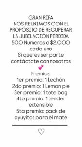 Antonella indicó que ante esta situación y la necesidad de su padre de contar con sus ingresos, entre las hermanas organizaron una rifa de 500 números por $2000 cada uno, con 5 premios que aportan ellas mismas desde sus emprendimiento particulares. El sorteo se realizará en redes sociales con transmisión en vivo, seguramente el próximo domingo, aunque aún no está confirmado.