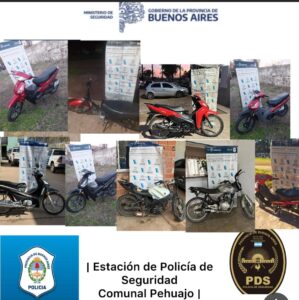 En un nuevo Operativo articulado por la Jefatura de Policía de Seguridad Comunal Pehuajó, se comunica a los vecinos de los distintos procedimientos en materia de seguridad vial realizados en la ciudad, en los cuales se cumplimentaron “OPERATIVOS PREVENTIVOS Y DINAMICOS EN CONTROL VEHICULAR”, sobre diferentes puntos estratégicos, con el fin de controlar el tránsito, labrándose en consecuencias múltiples infracciones a la Ley de tránsito y Ordenanzas Municipales vigentes, obtenido como resultado el secuestro de nueve (09) motocicletas de distintas cilindradas. Las actuaciones realizadas fueron puestas a disposición del Juzgado de Faltas de la Municipalidad de Pehuajó, a cargo de la Dra. CECILIA LUCIANI. –