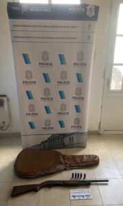Con fecha 15 de diciembre de 2025, personal de esta estación comunal, raíz llamado 911 emergencias, fue solicitado en inmediaciones de las arterias Altes e/ Del campo y Landa de este medio, lugar este donde se encontraba una persona sexo masculino de 50 años de edad, oriunda de este medio, de la cual se pudo observar que se encontraba en actitud sospechosa merodeando frente a un inmueble, portando consigo un estuche de guitarra.- En consecuencias, al intentar proceder a la correcta identificación del sujeto descripto, mismo opone fuerte resistencia al personal policial, procediendo en consecuencias a su inmediata aprehensión, tras requisa del estuche de guitarra que trasportaba, se constata que en el interior del mismo portaba de manera ilegal un arma de fuego, en este caso una Escopeta calibre 12.70, conteniendo consigo cinco municiones del mismo calibre.-