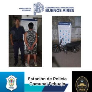 Con fecha 01 de Febrero de 2025 personal de la Estación Policía Comunal Pehuajo, cumplimentando órdenes de servicio dispuestas por la Jefatura Comunal, proceden sobre vía publica a la interceptación de una persona sexo masculino, de 19 años de edad, con domicilio en esta ciudad, de quien se constató se hallaba realizando disturbios en vía pública, alterando el orden publico e incitando a personal policial a pelear, situación que rápidamente fue accionada por los agentes intervinientes, procediendo a la aprehensión del masculino como así también al secuestro de una motocicleta tipo 110 c.c que era maniobrada por esta persona.- Causante fue puesto a disposición del Juzgado de Paz Letrado Local; quien luego de transcurrido los términos legales correspondientes recupero libertad.-