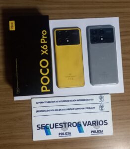 Con fecha 04 de noviembre del 2024, personal de la Estación Policial Comunal, juntamente con personal de la DDI T.L con asiento en esta ciudad, y habiendo continuado con las averiguaciones referente al hecho suscitado en el mes de Septiembre del cte. año, donde vecino de este medio propietario de un comercio rubro venta y/o reparación celular ubicado en calle Zanni, radicara denuncia por la sustracción de dos teléfonos celulares. Motivando la sospecha que los mismos habían sido comercializados por terceros, se obtiene información para el esclarecimiento del hecho, logrando a la incautación de dos celulares, uno marca Xiaomi Poco X6Pro de color amarillo y negro, con su respectiva caja y la restante marca Xiaomi Poco X6Pro color gris y negro, resultando estos los sustraídas oportunamente, los que exhibidos a damnificado fueron reconocidos . – Interviene Fiscalía Nro. 7 Descentralizada Pehuajo. –