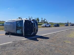 Este domingo: Choque y vuelco entre dos vehículos en ruta 5 entre 9 de Julio y Bragado