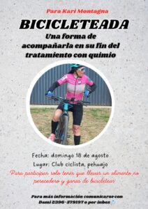 Damián Pallero es el único hijo de Karina Montagna, una conocida vecina de nuestra ciudad que hace 5 meses inició un tratamiento de quimioterapia y ayer tuvo la última aplicación. El joven contó que a modo de festejo y en contacto con amigos, decidieron organizar una bicicleteada solidaria; dijo que toda la familia practica ciclismo y por eso eligieron esa actividad.