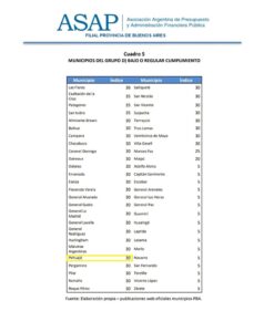La ASAP (Asociación Argentina de Presupuesto y Administración Financiera Pública) a través de su filial bonaerense publicó el informe correspondiente al primer semestre del 2024, del índice que elaboran sobre transparencia fiscal municipal. El Municipio de Pehuajó con un escaso índice de 30 se ubica entre los Municipios de bajo a regular cumplimiento.