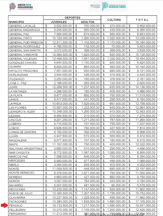 Juegos Bonaerenses: En detalle, cuánto recibirá cada distrito de la cuarta sección