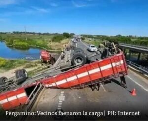 Tras el vuelco de un camión que transportaba ganado este domingo en el kilómetro 226 de la Ruta Nacional 8, en el carril sentido Pergamino–Pilar, decenas de personas comenzaron a carnear a los animales en plena vía pública.