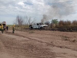 EL HECHO OCURRIÓ EN HORAS SE LA TARDE DE HOY EN EL KM 427 DE LA RUTA 226 EN EL CAMPO «EL CARDÓN». EL VEHÍCULO QUEDO ESTACIONADO MIENTRAS EL PROPIETARIO, UN JOVEN DE 33 AÑOS DOMICILIADO EN PEHUAJÓ, REALIZABA TAREAS AGRICOLAS. LA CAMIONETA, UNA FORD RANGER TOMO RUEGO QUEDANDO PRÁCTICAMENTE DEVORADA POR LAS LLAMAS. ACUDIERON BOMBEROS PARA EVITAR QUE APAGAR LA PICK UP Y EVITAR QUE EL FUEGO SE EL EXPANDA.