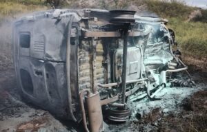En un trayecto, los dos conductores de los autos que encabezaban la caravana se dieron cuenta de que el tercer vehículo no estaba detrás de ellos. Frenaron unos minutos y al ver que no regresaban, decidieron volver y se encontraron con la Fiorino prendida fuego a metros de un arroyo.