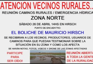 Reymundo informó que mañana hay una reunión de productores en Mauricio Hirsch, donde cada uno manifiesta su preocupación y encuentra un lugar para ser escuchado, algo que ya ocurrió tres veces en la zona sur, y destacó que el reclamo es claro. Más allá de la situación de hoy que seguramente va a pasar, piden que se hagan los trabajos cuando se puede, cuando corresponde y son menos costosos, para evitar que este cuadro se repita constantemente como viene ocurriendo. Dijo los trabajos con agua son mediocres y más costosos.