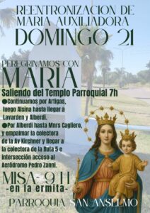 Una de las colaboradoras de la Parroquia San Anselmo, Graciela Paz, invitó a la comunidad a acompañar un acto sumamente emotivo que se llevará a cabo el domingo. Es un pedido especial que había realizado el Padre Germán, y un compromiso asumido por Graciela Paz, de recuperar la imagen original de María Auxiliadora, que colocaron oportunamente alumnos Salecianos en el Acceso al Aeródromo y Ruta 5, para reacondicionar la ermita y reentronizar la imagen en su lugar original.