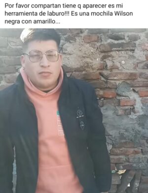 Sebastián Espíndola hizo público su pedido de devolución de los elementos que le fueron sustraídos el fin de semana en nuestra ciudad, señalando que se trata de sus herramientas de trabajo, lo que le permite llevarle un plato de comida a sus hijos todos los días. Contó que fue contratado para actuar en una fiesta privada en nuestra ciudad, que terminó alrededor de las 3 de la mañana, por lo que con su amigo e integrante de su banda, Alan Ponce, decidieron ir a Stylos a hacer tiempo hasta la hora que pasara el micro que lo llevaría de nuevo a su ciudad. Dejaron las cosas en el auto, estacionado en la calle de tierra, y cuando salieron se encontraron con que delincuentes habían forzado las puertas traseras, para llevarse solamente la mochila; “había una campera y otras cosas importante, pero se llevaron solo la mochila” contó Sebastián, y agregó que en el interior había una netbook del Estado, con el teclado roto y un teclado externo, el cargador de la computadora, los cables de audio, dos micrófonos y un disco externo con mucha información del trabajo y fotos de sus hijos. Dijo que la computadora está bloqueada y aseguró que nada de lo que se llevaron tiene valor para nadie más que para él, por lo que apeló a la solidaridad de las personas para poder recuperar sus cosas. Indicó que no hubo tiempo para radicar la denuncia, y agradeció a la gente que lo ayuda de alguna manera desde que realizó la publicación. “Hace 11 años que me dedico a esto, voy seguido a Pehuajó porque me dan mucho trabajo, pero jamás me había pasado nada igual” aseguró.
