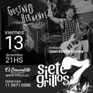 Gustavo Hernandez, responsable del ciclo cultural Siete grillos, informó que durante el verano va a implementar un cambio en el día de presentación del ciclo que serás los viernes, a las 21 horas en El conventillo; además, habrá una apertura a temas musicales de épocas más actuales, y a músicos jóvenes, como Bersuit, Divididos y los últimos temas de Fito Paez y Charly García.