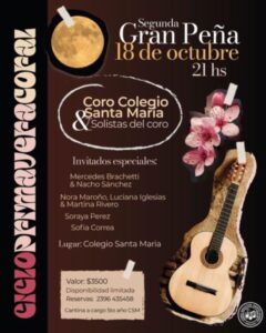 Una de las integrantes del Coro del Colegio Santa María, Verónica Ferraro, invitó a la comunidad a acompañarlos hoy en la segunda edición de un evento que llegó para quedarse y que ha tenido muy buena respuesta del público. Será a las 21 horas en el SUM del Colegio, y las entradas están en venta con un valor de $3500; contará con una grilla interesante de artistas invitados además de la actuación del Coro.