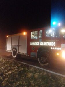 El Jefe del Cuerpo Activo de Bomberos Voluntarios de Juan José Paso, Sebastián Quintella, informó sobre dos servicios a los que fueron convocados en la jornada de ayer. El primero de ellos, alrededor de las 17 horas, fue un incendio forestal en cercanías de la planta urbana, adonde concurrió una dotación que trabajó por aproximadamente una hora. Más tarde, alrededor de las 20 horas, acudieron a un llamado por un incendio vehicular que se desarrollaba en el kilómetro 396 de la Ruta 5, con dos dotaciones que trabajaron por una hora y media; en el vehículo circulaba solo el conductor, que pudo salir sin sufrir inconvenientes, aunque las pérdidas en la unidad fueron totales.