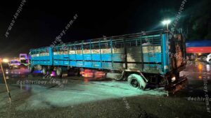 El fuego se originó en el acoplado marca F.H. Según se informó, «debido al fuego se procedió a bajar varios vacunos, los cuales fueron encerrados en un campo de las inmediaciones» para garantizar su seguridad y despejar la calzada.