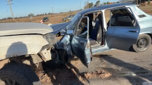 Al arribo de la dotación se observa un auto y una camioneta colisionados, ambos posicionados sobre la calzada.