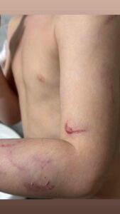 Eric Rivarola indicó que su hijo tiene mordeduras en los brazos, la espalda y las piernas, y que hoy está realizando un tratamiento con antibióticos; y contó que además de llevar al nene al hospital con una crisis de nervios ademas de los golpes, se acercaron a la Comisaría a denunciar, pero les indicaron que es un tema del Municipio, que tienen que denunciar en Inspectoría. Relató que la mamá del nene trabaja en el Municipio y fue ella quien alertó sobre lo sucedido, recibiendo como respuesta que algo iban a hacer. “a mí no me llamó nadie, y no pretendo que los saquen, pero sí que controlen para que esto no vuelva a pasar” expresó.