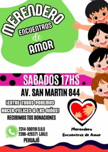 Alejandro Aguilar y Julieta Luna son un matrimonio de nuestra ciudad, y anunciaron que ya trabajan para abrir un merendero, con la intención que se convierta en un comedor para niños y adultos de nuestra ciudad que necesitan ayuda. La idea surgió luego de participar en un evento navideño de una Iglesia de Bolivar en la que están congregados, donde se prepararon choripanes, ensaladas de frutas y regalos para los niños. “Queremos traer esa felicidad a Pehuajó, queremos ver esas sonrisas en los chicos de acá” manifestaron Alejandro y Julieta, y anunciaron que este sábado a las 17 horas, se realiza la primera entrega de meriendas, y la idea es seguir trabajando de esa manera. El merendero va a funcionar en el patio de su casa, en San Martín 844, atendido por el matrimonio y sus 6 hijos, que ya preparan un evento especial para reyes, donde además de alimentos, quieren entregar juguetes.